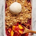 Reheat your crisp in the oven at 350°F for about 15-20 minutes—it helps keep the topping crisp rather than soggy. Microwave works in a pinch but the topping won’t stay as crisp. For best texture, I always recommend reheating low and slow in the oven.