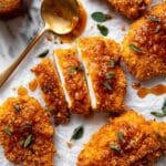 This Baked Crunchy Hot Honey Chicken recipe features crispy cornflake-coated chicken tenderloins baked to perfection and drizzled with a sweet and spicy hot honey sauce. The combination of smoky paprika, Parmesan, and a hint of cayenne pepper in the sauce creates a flavorful dish that’s perfect for a spicy yet satisfying meal.