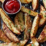 Keywords: baked potato wedges, garlic parmesan potatoes, crispy potato wedges, side dish recipe, oven baked potatoes