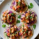 Besides shredded cabbage and avocado, I love adding pickled jalapeños, cilantro, green onions, radishes, or even a squeeze of fresh lime. These toppings add brightness, crunch, and a touch of heat that complement the shrimp perfectly.