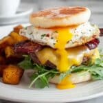Brioche buns are my favorite because they’re buttery and soft, which pairs perfectly with the rich ingredients. English muffins also work well if you want something a bit denser and more textured. Gluten-free buns can be used too if needed.