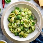 I haven’t had great luck freezing this particular pasta because the broccoli changes texture after freezing and reheating. If you want to freeze leftovers, try leaving out the broccoli and Parmesan, then add fresh when reheating. That keeps the flavors fresh and textures better.