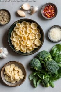 - Short pasta (conchiglie, orecchiette, or rotini): These shapes hold the sauce and broccoli well; any short, ridged pasta will do.