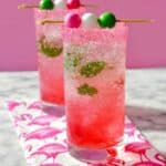 Rim your glass with some lime juice and dip it in pink colored sugar for a fun, sparkly effect. This adds a little extra festivity that I personally find makes the drink feel extra special.