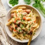 Keywords: Cajun pasta, sausage pasta, Alfredo pasta, creamy Cajun recipe, smoky sausage, penne pasta recipe, Tony Chachere’s Alfredo