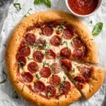 Cast Iron Skillet Pizza with Pepperoni and Basil Recipe