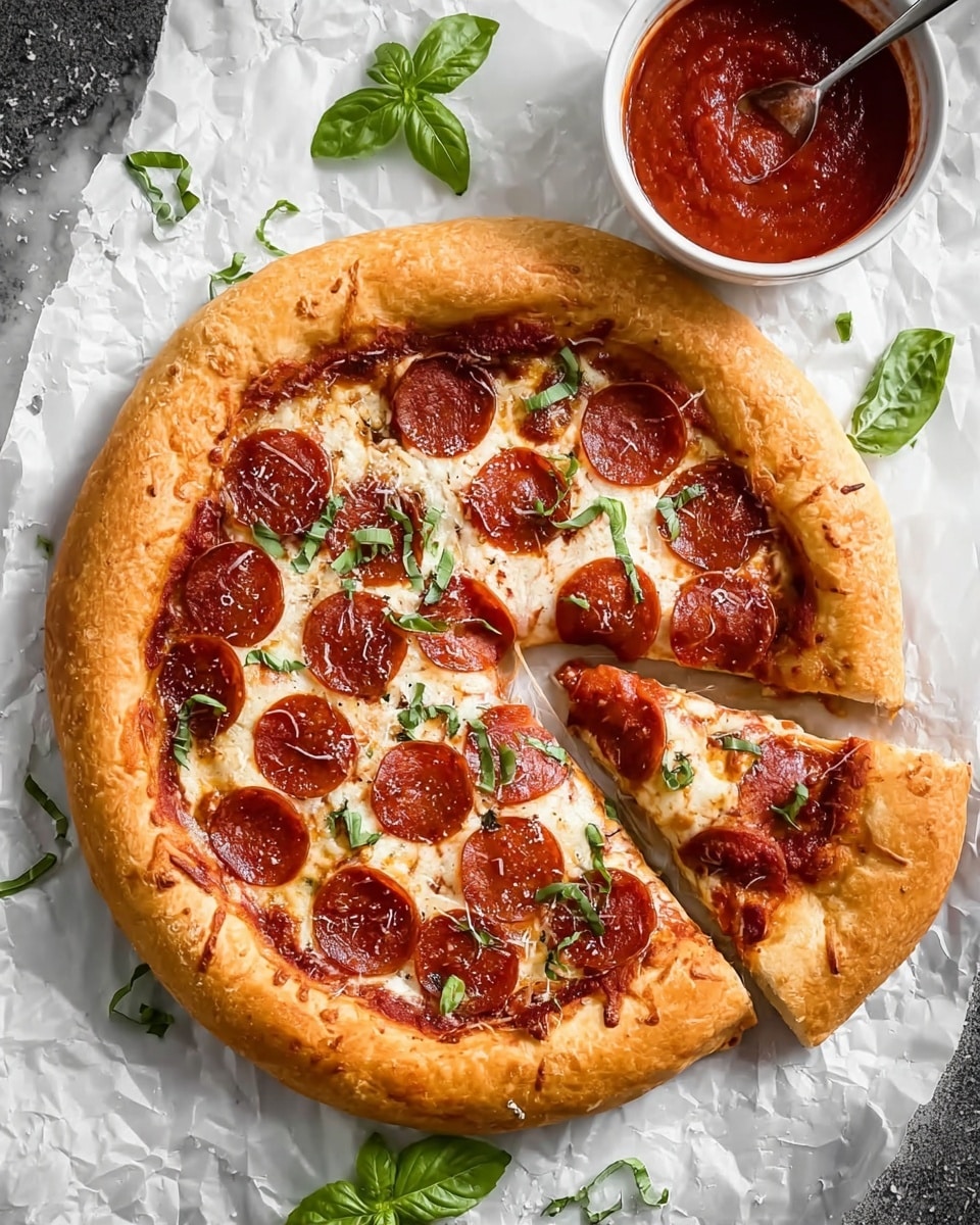 I’m a big fan of fresh basil straight from the garden or market—it adds a lovely herby freshness that contrasts the rich, cheesy, and pepperoni flavors perfectly. Sometimes, I drizzle a little extra virgin olive oil or a sprinkle of red pepper flakes if we want a bit of heat. Parmesan shavings on top right before serving never fail to impress guests.
