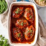 - Rest and Serve: Remove the chicken from the oven and allow it to rest for 5 to 10 minutes. The sauce will thicken slightly during this time. Spoon the thickened sauce over the chicken pieces and garnish with minced fresh parsley if desired. Serve hot with extra sauce on top.