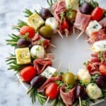 Keywords: Charcuterie wreath, party appetizer, holiday appetizer, cured meats, cheese platter, no-cook appetizer, festive appetizer