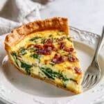 Keywords: quiche recipe, cheese spinach bacon quiche, savory quiche, homemade crust quiche, brunch recipes, easy quiche