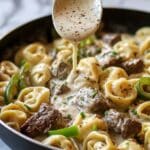 Keywords: cheesesteak tortellini, creamy provolone sauce, steak pasta, easy dinner, comfort food, creamy pasta recipe