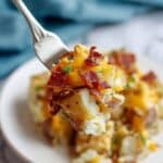 I’ve frozen this cheesy bacon mashed potato casserole successfully, though I recommend undercooking slightly before freezing to avoid overbaking later. Wrap the dish tightly in foil and plastic wrap, and freeze for up to 2 months. Thaw overnight in the fridge before reheating.