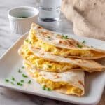 Keywords: egg quesadillas, breakfast quesadilla, easy breakfast recipe, cheesy quesadilla, scrambled egg quesadilla