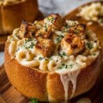 Keywords: Chicken Alfredo, Garlic Bread Bowls, Creamy Chicken, Comfort Food, Bread Bowl Recipe, Easy Dinner, Parmesan Chicken