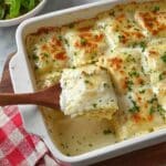 You can swap heavy cream for half-and-half or milk, but be aware the sauce won’t be as rich or thick. Also, using part-skim mozzarella and low-fat cottage cheese helps reduce calories while keeping creaminess.