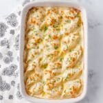 Keywords: Chicken Alfredo, Stuffed Shells, Roasted Garlic Alfredo, Baked Pasta, Italian Casserole, Comfort Food, Family Dinner