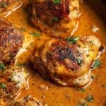 Start by patting your chicken thighs and drumsticks dry with paper towels — this helps them brown nicely. Melt butter in a large, heavy-bottomed skillet over medium-high heat, then add the chicken pieces in batches so they’re not crowded. Don’t rush this; let them develop a golden-brown crust on all sides before flipping, usually about 4-5 minutes per side. This step really seals in juices, so your chicken stays moist during simmering.