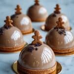Celebrate the holiday season with these elegant Christmas Gingerbread Latte Mousse Domes. Featuring a spiced gingerbread cookie base, a rich coffee-gingerbread mousse, and a shiny mirror glaze, these festive domes combine classic holiday flavors with a luxurious mousse texture. Perfect for a special treat or a show-stopping dessert at your Christmas gathering.