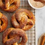 Keywords: soft pretzels, cinnamon sugar pretzels, homemade pretzels, cream cheese dip, sweet pretzels, baked pretzels, party snack