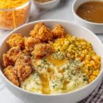 Keywords: KFC Famous Bowl, copycat recipe, air fryer chicken nuggets, mashed potatoes bowl, chicken gravy, comfort food