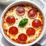 Freezing this pizza bowl works in a pinch—just portion into freezer-safe containers before baking. When ready to eat, thaw overnight in the fridge and then bake until hot and bubbly. I do recommend eating it within 1-2 months to maintain the best texture and flavor.
