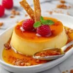 I usually keep the garnishes simple with this flan to let the creamy texture and caramel shine. A few fresh mint leaves or thinly sliced strawberries give a pop of color and a fresh contrast to the richness. Sometimes I sprinkle toasted coconut flakes for a bit of crunch—trust me, that combo is surprisingly addictive!