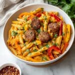 This Creamy Cajun Sausage Pasta is a flavorful and hearty dish combining spicy andouille sausage with vibrant bell peppers, mushrooms, and a rich, creamy sauce. Made with gluten-free pasta and a blend of Cajun spices, it’s perfect for a comforting weeknight dinner with a deliciously smoky, spicy kick.