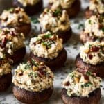 Absolutely! While baby bell or cremini mushrooms are ideal because of their size and texture, you can substitute with button mushrooms or larger portobellos (just adjust the filling quantity accordingly). Just make sure the mushrooms you choose have sturdy caps that can hold the creamy filling without falling apart.