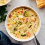Keywords: creamy vegetable soup, cheesy potato soup, broccoli corn soup, comforting soup, homemade vegetable soup