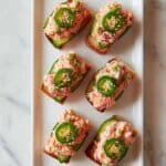 Once your rice cakes are nicely crispy, top each with a generous spoonful of that spicy salmon mix. Add a couple of avocado slices and jalapeño on top for freshness and a little zing. Finish everything off with a sprinkle of toasted white sesame seeds and a drizzle of sweet chili sauce if you want to take the flavor to the next level.