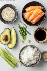 Each ingredient plays a key role—from the sushi rice that crisps up perfectly to the spicy, creamy salmon topping that brings all the flavor. A quick tip: choosing sushi-grade salmon is essential for that fresh, melt-in-your-mouth experience.