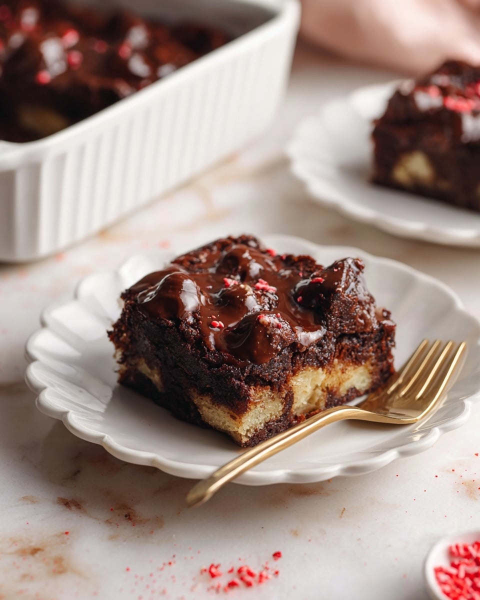 Grease your baking dish to keep the pudding from sticking and layer in the chocolate-coated bread cubes evenly. Pour your remaining custard over the top to ensure every crumb soaks up that chocolate goodness. Cover tightly with foil and let it sit at room temperature for at least 30 minutes—this soaking phase is the secret to whether your pudding turns out dense and boring or utterly tender and moist. If you’re prepping ahead, chilling it in the fridge for up to a day also works beautifully.