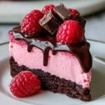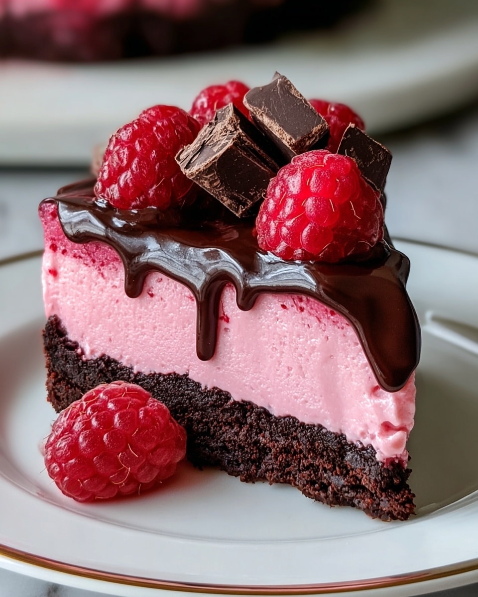 Keywords: dark chocolate cheesecake, raspberry cheesecake, chocolate cookie crust, creamy cheesecake recipe, baked cheesecake dessert