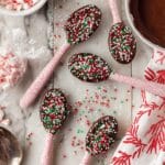 Create festive DIY Peppermint Candy Spoons perfect for holiday hot chocolate or as charming edible garnishes. This simple recipe combines crushed Starlight Peppermint Candy with creamy Wilton Candy Melts, finished with colorful holiday sprinkles to add a sweet, minty crunch to your winter drinks and desserts.