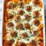 Keywords: baked meatball casserole, easy dinner, one dish meal, pasta casserole, weeknight dinner