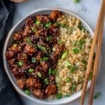 This bourbon chicken freezes really well if you want to batch cook. Just cool completely and portion into freezer-safe containers or bags. Defrost overnight in the fridge and reheat gently on the stove or microwave. The texture stays surprisingly good.