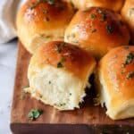 When the rolls come out of the oven, brush them immediately with the warm garlic butter for that incredible garlicky shine. Your kitchen will smell amazing — it’s my favorite part!