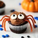 - Spider Cupcake Decoration: Spread approximately a tablespoon of chocolate frosting evenly over each cupcake. Break red licorice strips into smaller pieces to form legs and arrange them around the edges to resemble spider legs. Place candy-coated chocolate pieces on the frosting as spider bodies. Repeat for the desired number of spider cupcakes.