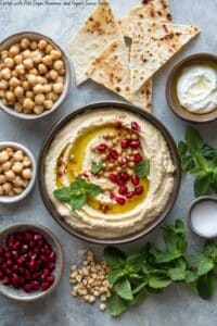 I always add toasted pine nuts and a handful of pomegranate seeds because they bring a delightful contrast — creamy vs. crunchy, tangy vs. nutty. Fresh mint and parsley lift the flavors with herbaceous brightness, and a sprinkle of sumac adds a lovely tart note that makes every bite interesting. I find these garnishes turn a simple dish into something really special.