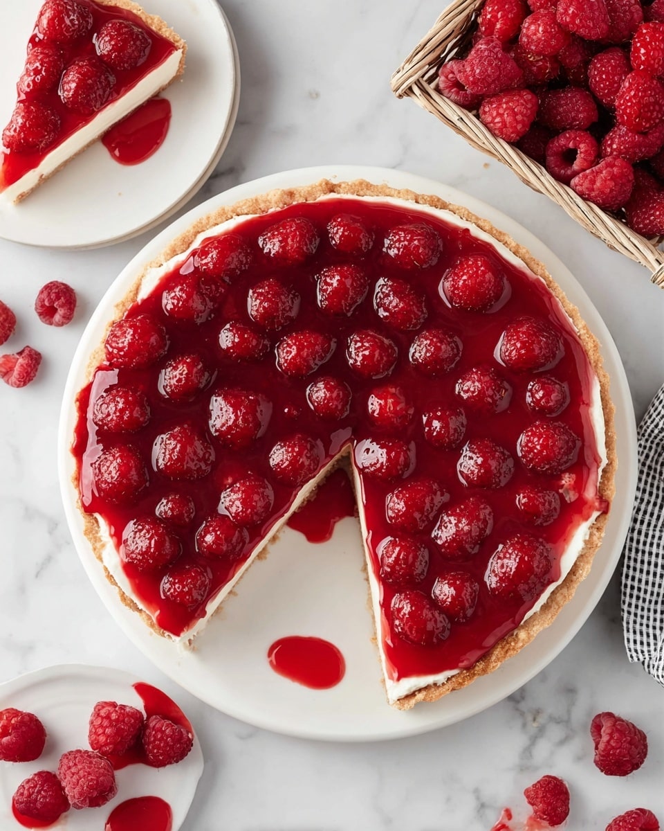 This delicious Raspberry Pie features a flaky 9-inch pie crust filled with a sweet and tangy mixture of fresh raspberries, raspberry Jello, and a perfectly thickened syrup. It’s a refreshing dessert ideal for showcasing fresh summer berries with a beautifully set filling.