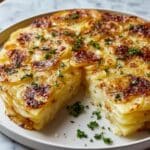 Start by peeling your potatoes and cutting them into thin, even slices—about 1/8 inch thick works well. This helps them cook evenly and creates that lovely layered texture. I like to soak the slices briefly in cold water to remove excess starch, then dry them completely with a clean kitchen towel. This little step goes a long way in helping the potatoes crisp up perfectly in the pan.