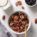 I like to keep this Grain-Free Granola Recipe flexible—it’s your canvas really! Play around with different nuts or seeds, or swap in dried fruits to match whatever ingredients you have on hand or the season’s best offerings.
