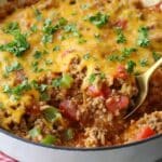 A hearty and flavorful Ground Beef Rice Skillet that combines savory browned beef, aromatic onions and garlic, tender rice, and melty cheddar cheese for a comforting one-pan meal perfect for busy weeknights.
