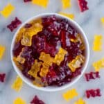 I keep my gummies in an airtight container in the fridge where they stay fresh and chewy for about a week. Make sure to layer parchment paper between batches so they don’t stick to each other. This recipe is perfect for making ahead before an event or when you want snacks ready to grab.