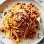 Keywords: Spaghetti Bolognese, Italian pasta sauce, ground beef sauce, classic Bolognese, homemade pasta sauce, slow simmered sauce