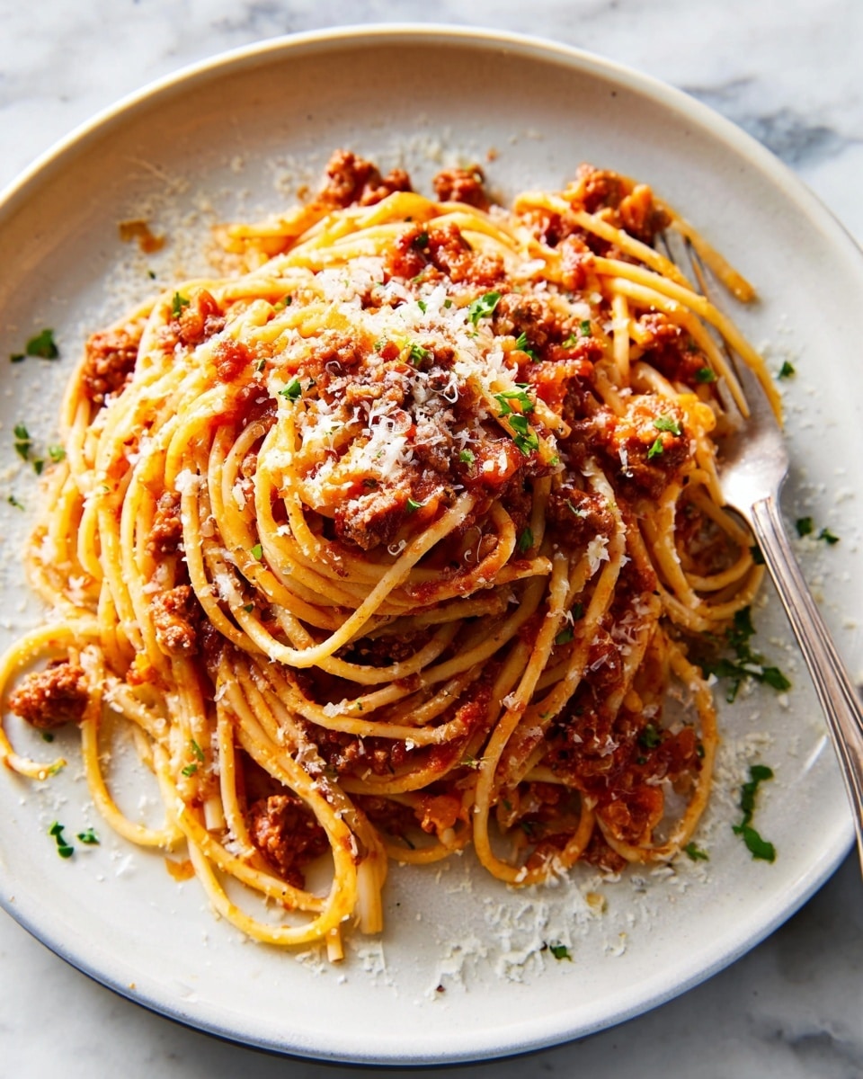 I always top my Bolognese with torn fresh basil leaves because their bright herbal flavor cuts through the richness. A generous shower of freshly grated Parmesan cheese is essential—you’ll want that salty, nutty note on every bite. Sometimes, I add a drizzle of good olive oil right before serving for a silky finish.