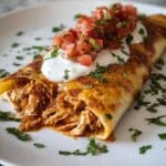 This Homemade Chicken Chimichangas recipe features tender shredded chicken seasoned with a blend of spices, combined with cheese, refried beans, and green chilies, all wrapped in flour tortillas and perfectly fried to achieve a crispy, golden exterior. Served with salsa and sour cream, these chimichangas are a delicious Tex-Mex treat that’s crunchy on the outside and flavorful on the inside.
