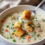 This Homemade Cream of Chicken Soup recipe delivers a rich, comforting bowl of creamy goodness made from scratch using fresh vegetables, tender chicken, and a flavorful blend of herbs and spices. Perfect as a hearty meal on its own or a delicious base for casseroles, this soup is enhanced with crunchy homemade croutons for added texture.