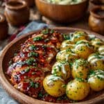 If you’re craving comfort food that feels both special and totally doable on a weeknight, this Honey BBQ Chicken with Creamy Garlic Parmesan Potatoes Recipe is exactly what you need. I’ve made this dish a dozen times now, and every single time the combination of tender chicken coated in sweet, sticky BBQ sauce paired with rich, garlicky potatoes gets everyone asking for seconds. It’s one of those meals that manages to be cozy and fancy all at once—perfect for when you want something satisfying without spending hours in the kitchen.