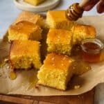 Freezing this Honey Butter Cornbread Recipe works really well. I slice it into squares, wrap each piece individually in foil, then place them in a freezer-safe bag. This way, I can grab a piece whenever I want. It freezes nicely for up to 2 months without losing flavor or texture.